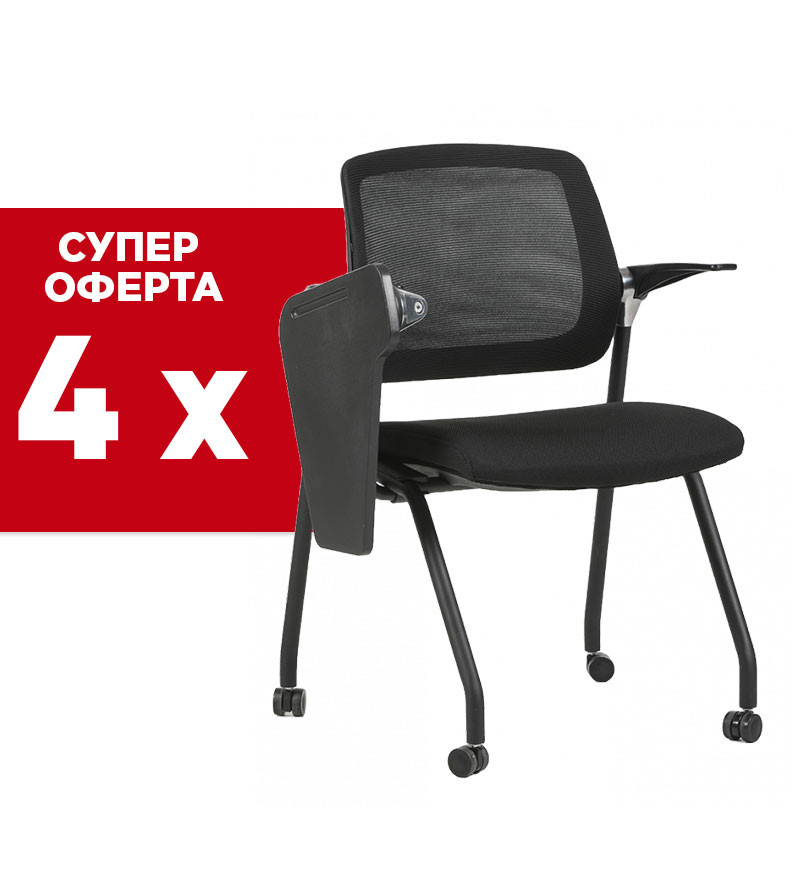 Конферентен стол Tessa е осигурява комфорт и издръжливост на потребителите, което го прави идеален за конферентни зали, чакални или университетски лекционни зали. Облегалката на стола е с ергономична форма, изработена от дишаща меш материя, а удобната седалка е тапициране с висококачествена дамаска. Елегантният дизайн на стола и здравата метална рамка, боядисана в черен цвят, гарантират висока издръжливост във времето. Моделът е оборудван със сгъваема полипропиленова маса, осигурявайки допълнително работно пространство.