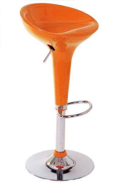 Минимално количество 2 броя. Въртящ бар стол с функция за регулиране на височината, позволяваща нагласяне в избрана от стоящия позиция, с пластмасова седалка и база от хромирана стомана. Столът е оборудван с газов механизъм и ринг за поставяне на краката. Бар стол за атрактивен акцент към Вашите мебели в дома или заведението Ви.