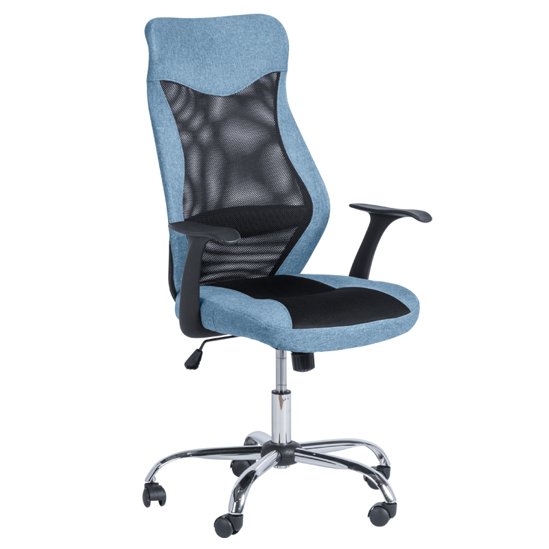 Стол BRANDY е директорски офис стол от последно поколение, който притежава нестандартна и стилна визия. За изработката му е използвана комбинация от различни цветове и материали - висококачествена дамаска и здрава еластична мрежа. Моделът е със стабилна хромирана основа, удобни подлакътници, регулируем люлеещ механизъм и газов амортисьор за коригиране на височината. Материал: дамаска + мрежа Размери цяло изделие: 68*64*112-122 см. Дълбочина седалка: 49 см; Височина седалка: 45-55 см; Дължина облегалка: 67 см. База: хром Подлакътници: полипропилен Газов амортисьор, коригиране на височина, люлееща функция Цвят: син, сив, горчица Максимално натоварване: 130 кг. В разглобен вид, с инструкция за монтаж Опаковка размер (см) - 79х25х65; Tегло: 15,5кг