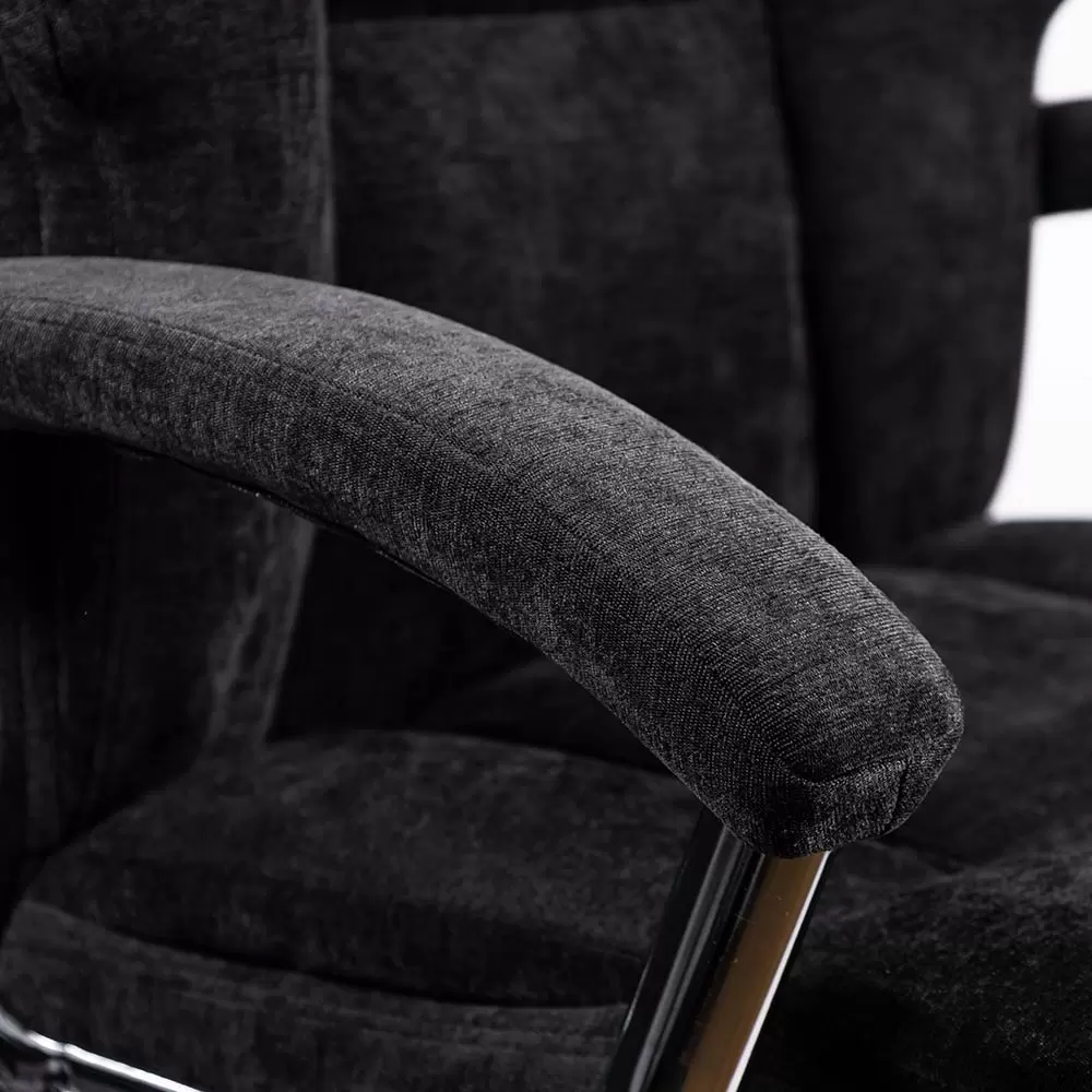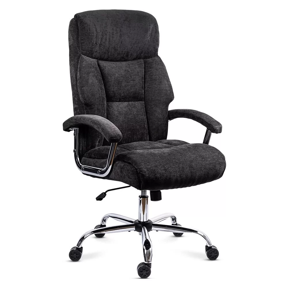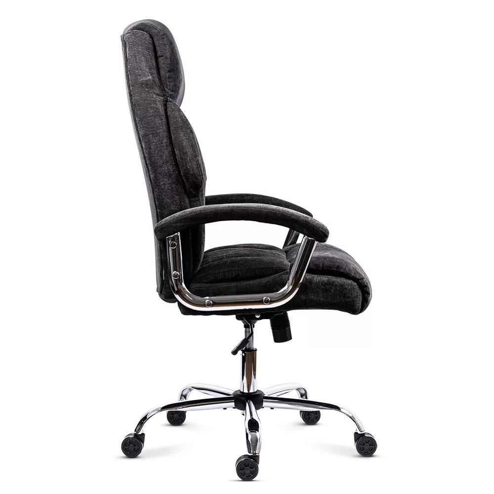 За тези, които предпочитат класическата елегантност, директорски стол Marsel предлага високо ниво на комфорт в семпъл и изискан дизайн. Мека тапицерия от плат покрива както седалката, така и високата облегалка, създавайки приятно усещане при седене. Подплатените подлакътници с хромирана стоманена конструкция добавят елегантен визуален контраст към тапицерията.