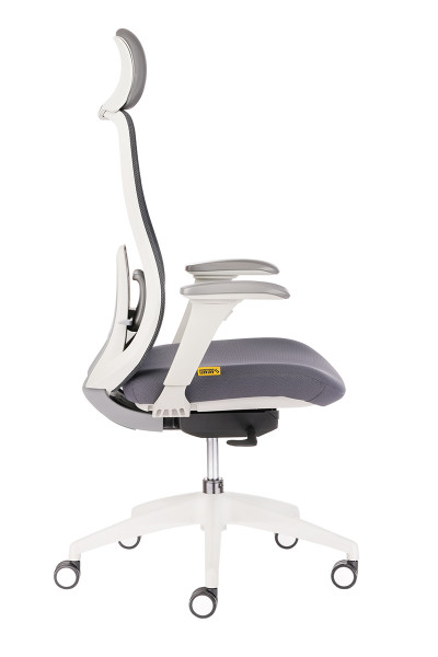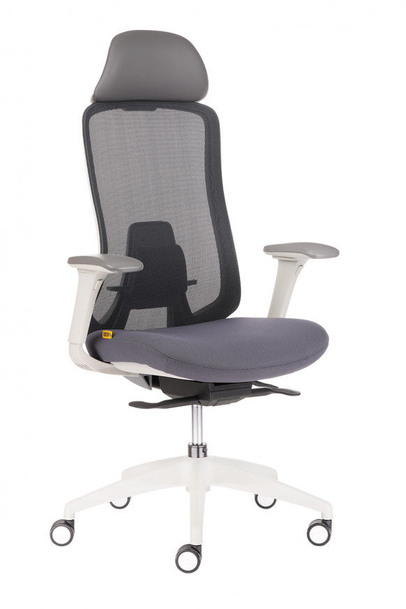 Eргономичен стол с мрежеста облегалка и полиуретанова седалка, тапицирана с дамаска, четири възможни цвята, регулируема лумбална опора, регулируема облегалка за глава, саморегулиращ се синхронен механизъм с възможност за заключване в четири позиции, SL механизъм за регулиране, дълбочината на седалката, 4D регулируеми подлакътници с меко покритие, стилна кръстачка с колелца за всички 60 мм за всички видове настилки, максимално натоварване до 120 кг, гаранция 36 месеца