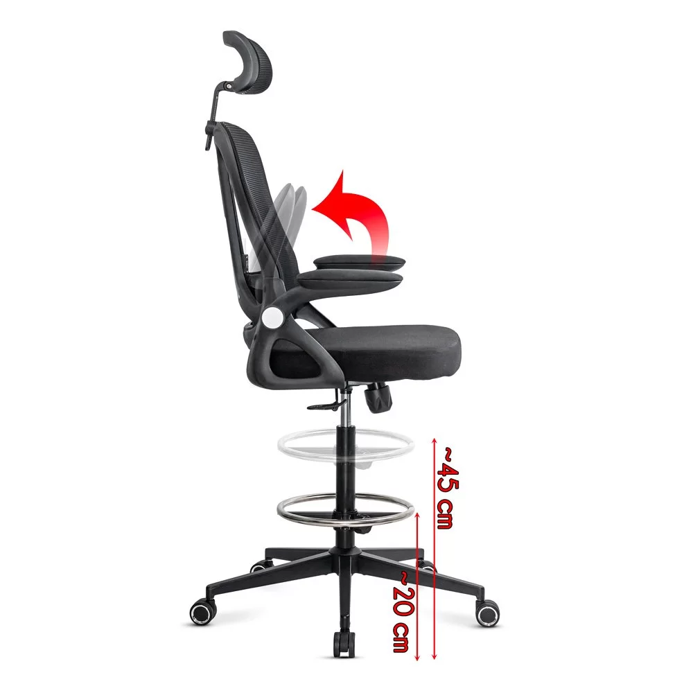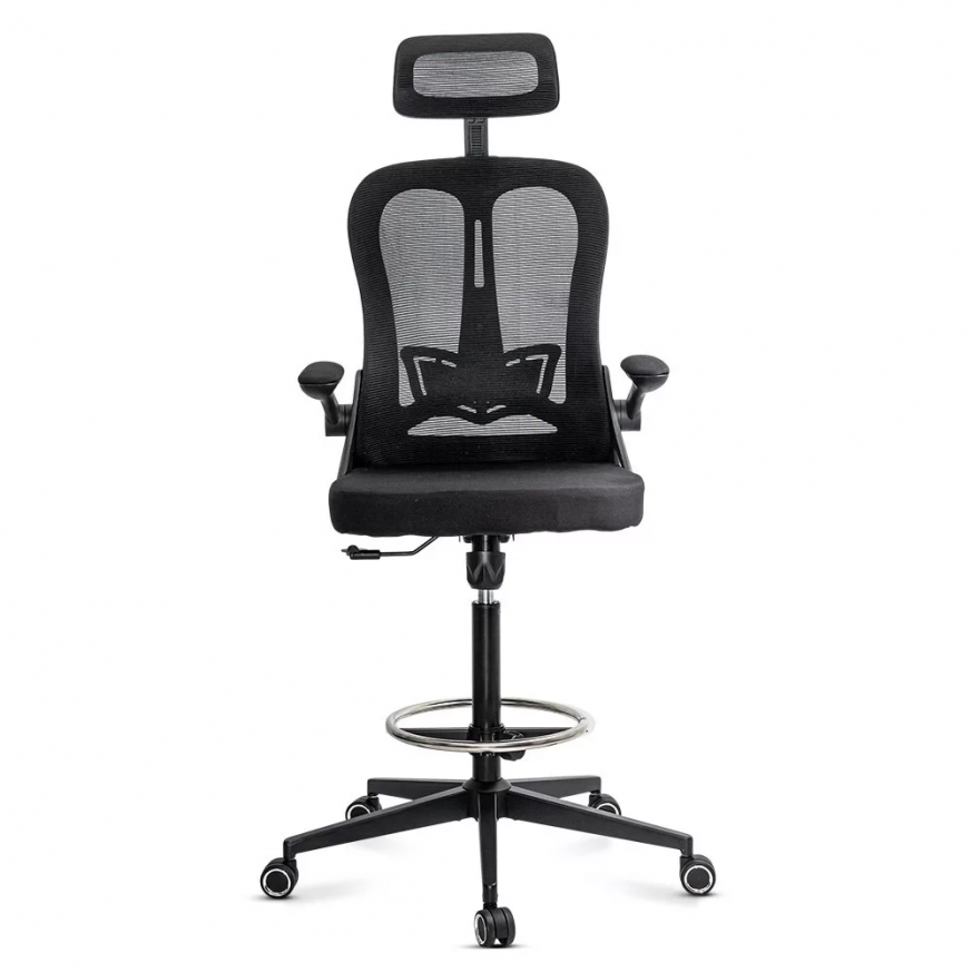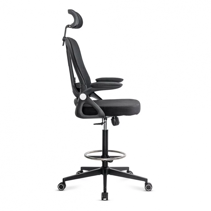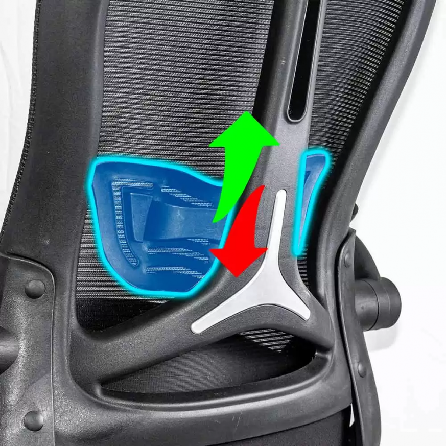 Облегалката за глава, регулируема по височина с 8 см и наклон до 35° , поддържа шийната област, предотвратявайки мускулното напрежение. Дишащата мрежеста облегалка осигурява ефективна вентилация, а регулируемата лумбална опора с 4 см помага за поддържане на правилна позиция. Подлакътниците са сгъваеми, което позволява отлична гъвкавост при употреба, особено в тесни пространства.