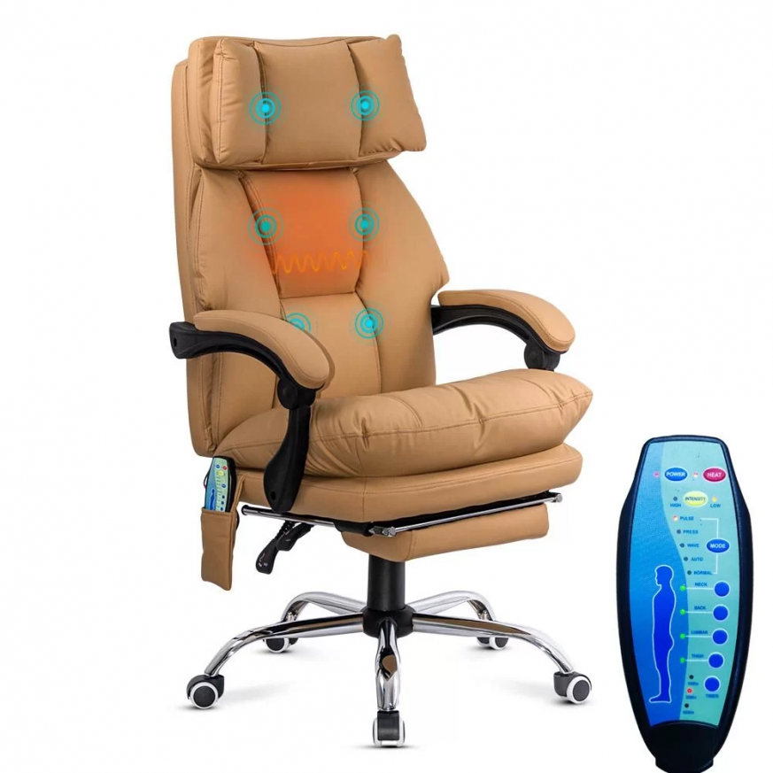 Ако искате стол, който съчетава елегантност, комфорт и функционалност, моделът Delfon е идеалният избор. Специално проектиран за модерни офиси и комфортни работни пространства, този стол предлага пълноценно релаксиращо изживяване благодарение на вградената масажна система и прибиращата се поставка за крака. Бежовата еко кожа добавя изискан вид, а плътната пяна отвътре осигурява отлична опора за гърба и раменете дори след часове употреба.