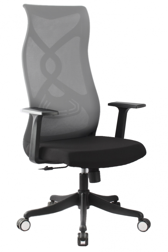 Модерен работен стол с черна конструкция и мрежеста облегалка графитеносив цвят седалка от полиуретанова пяна, тапицирана със черна дамаска статична лумбална опора TILT механизъм с релакс функция за люлеене или застопоряване в изправена позиция и настройване според тежестта на потребителя газов механизъм за регулиране височината на седалката статични подлакътници стилна, черна пластмасова кръстачка с колелца за всички 60 мм за видове настилки максимално натоварване до 120 кг гаранция 24 месеца