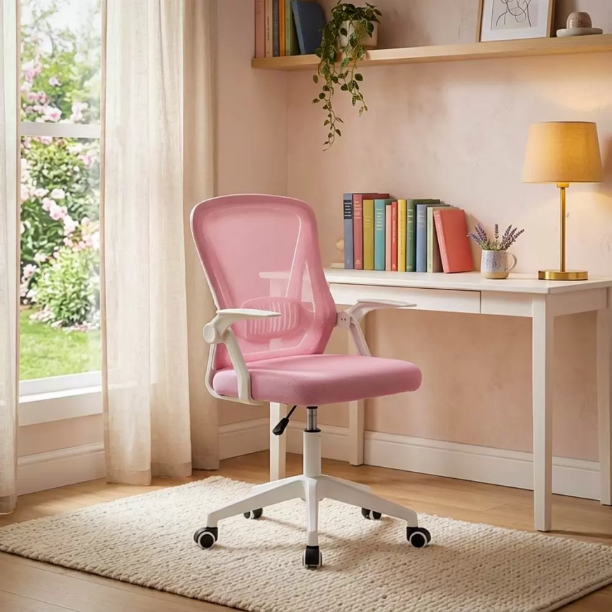 Накланящата се на 120° облегалка осигурява ефективна опора за намаляване на натиска върху гърба, а сгъваемите на 90° подлакътници спестяват място, като съхраняват стола под бюрото, като по този начин увеличават максимално наличното пространство в стаята.