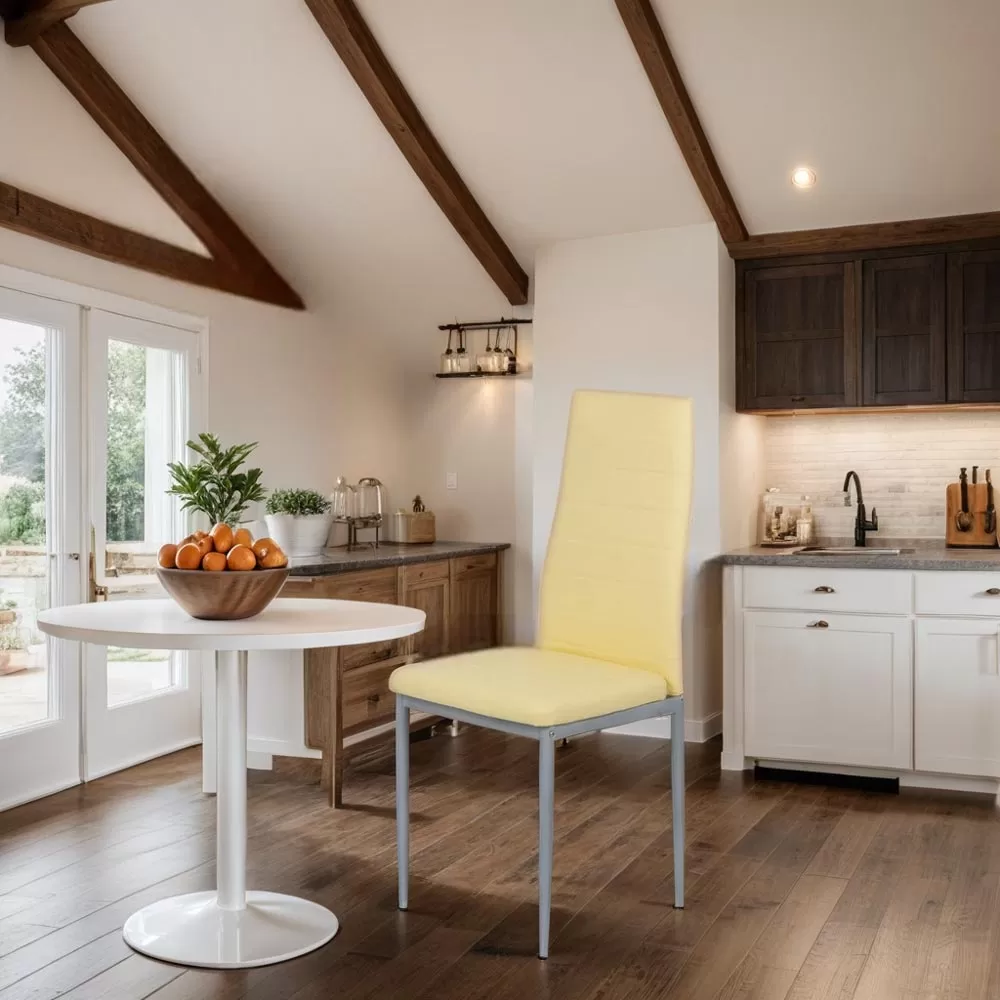 Минимално количество 4 броя. Кухненски стол с матирана метална основа, седалка и облегалка, тапицирани в еко кожа и набраздена форма. Стол HORHE допълва модерното обзавеждане в дома Ви.