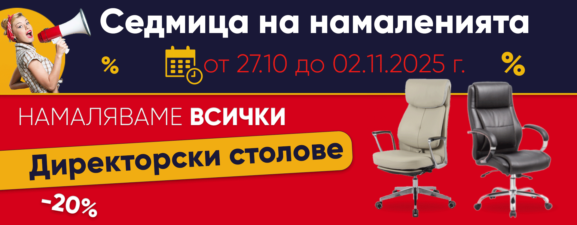 Нови продукти ДИРЕКТОРСКИ СТОЛ AIR MAX ЕКО КОЖА КАФЯВ -30% Нов 343,19 лв. / € 175,47239,99 лв. / € 122,70 продуктов код: 702970 продуктов код: 702970 По заявка ЕРГОНОМИЧЕН СТОЛ VELLA МЕШ ТЪМНОСИВ -30% Нов 275,99 лв. / € 141,11191,99 лв. / € 98,16 продуктов код: 702969-ТСВ продуктов код: 702969-ТСВ По заявка ЕРГОНОМИЧЕН СТОЛ VELLA МЕШ РОЗОВ -30% Нов 275,99 лв. / € 141,11191,99 лв. / € 98,16 продуктов код: 702969 продуктов код: 702969 По заявка ДИРЕКТОРСКИ СТОЛ IMPERIAL ДАМАСКА СИВ -30% Нов 429,59 лв. / € 219,65299,99 лв. / € 153,38 продуктов код: 702968 продуктов код: 702968 По заявка ДИРЕКТОРСКИ СТОЛ IMPERIAL ЕКО КОЖА ЧЕРЕН -30% Нов 429,59 лв. / € 219,65299,99 лв. / € 153,38 продуктов код: 702967 продуктов код: 702967 По заявка СТОЛ РАБОТЕН ОФИС DANNY МЕШ ОРАНЖЕВ -44% Нов 154,79 лв. / € 79,1485,99 лв. / € 43,97 продуктов код: 702300-ОРЖ продуктов код: 702300-ОРЖ По заявка ПОСЕТИТЕЛСКИ СТОЛ COMFORT PRO ЧЕРЕН -30% Нов 189,59 лв. / € 96,94131,99 лв. / € 67,49 продуктов код: 702963 продуктов код: 702963 По заявка ЕРГОНОМИЧЕН СТОЛ ELORA СИВ -31% Нов 259,19 лв. / € 132,52179,99 лв. / € 92,03 продуктов код: 702962 продуктов код: 702962 По заявка виж всички