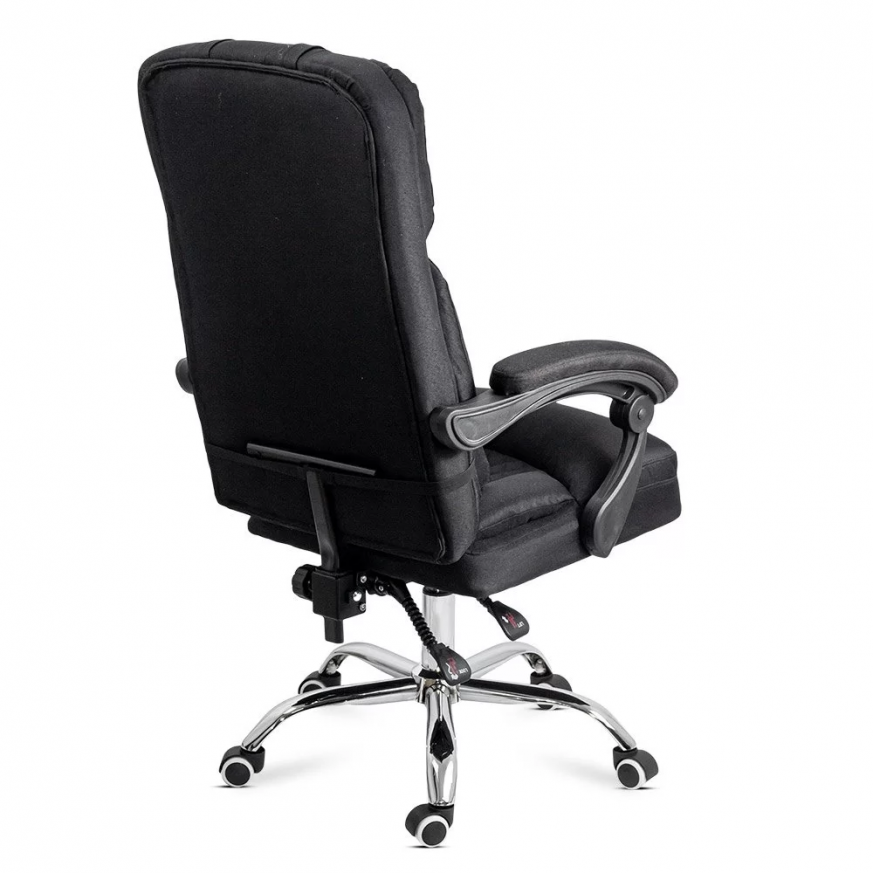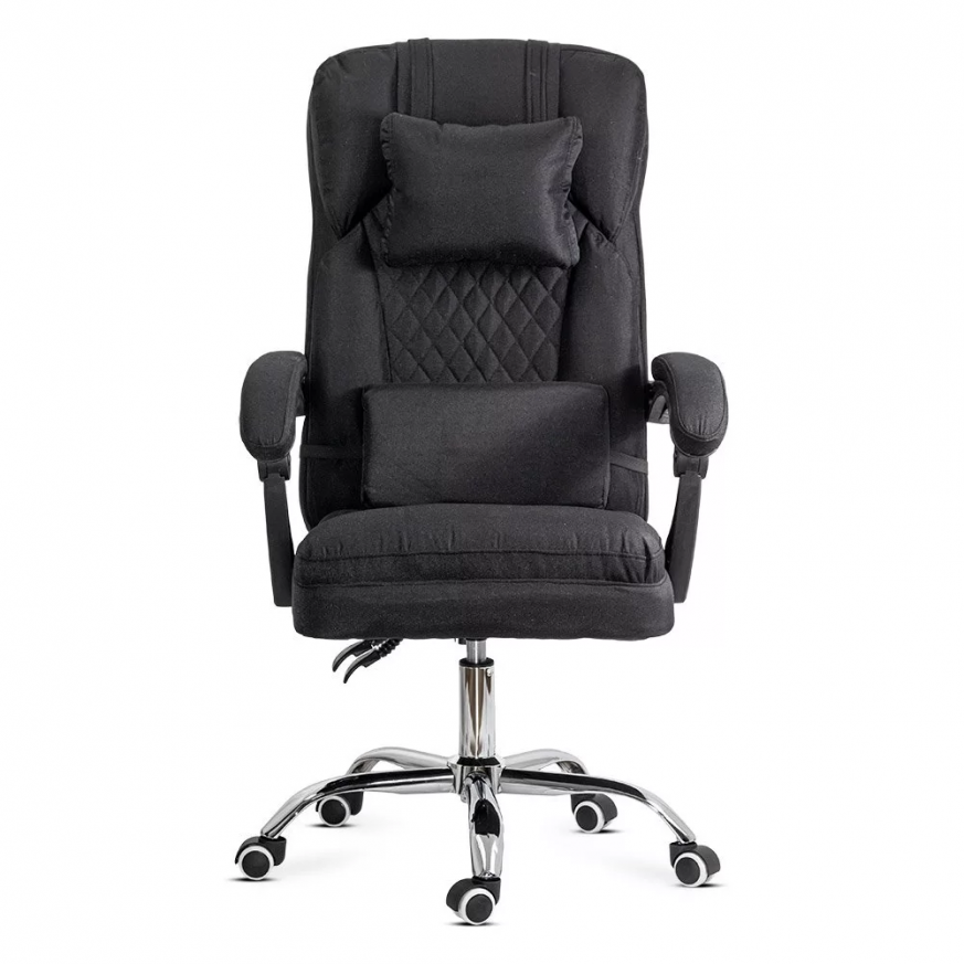 Модерният офис стол Alfredo от черен плат с метална основа и масажираща лумбална възглавница се отличава със своята здрава метална основа и гумирани колелца,. С A-синхронен механизъм, столът предлага възможност за лесно регулиране на височината и ъгъла на облегалката, което ви позволява да намерите перфектната позиция на седене. В допълнение, облегалката може да се наклони до 135 градуса , за моментите, когато имате нужда от релаксираща почивка.