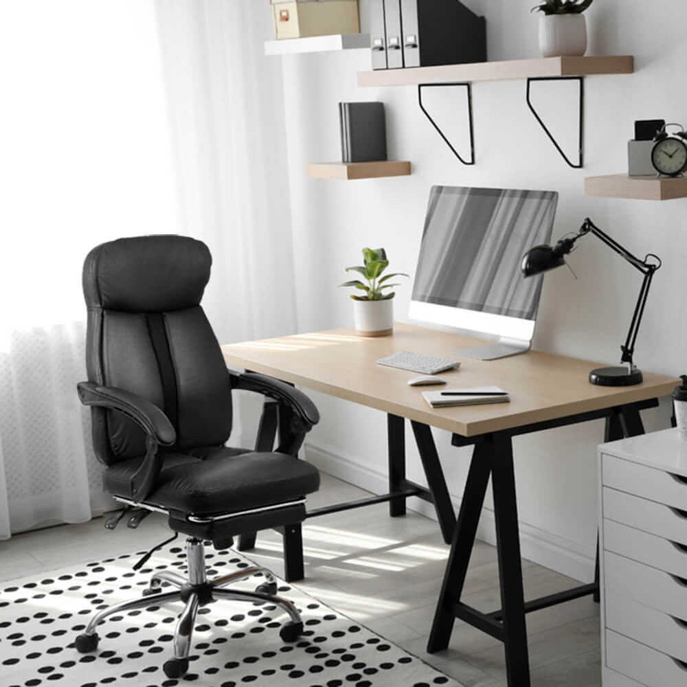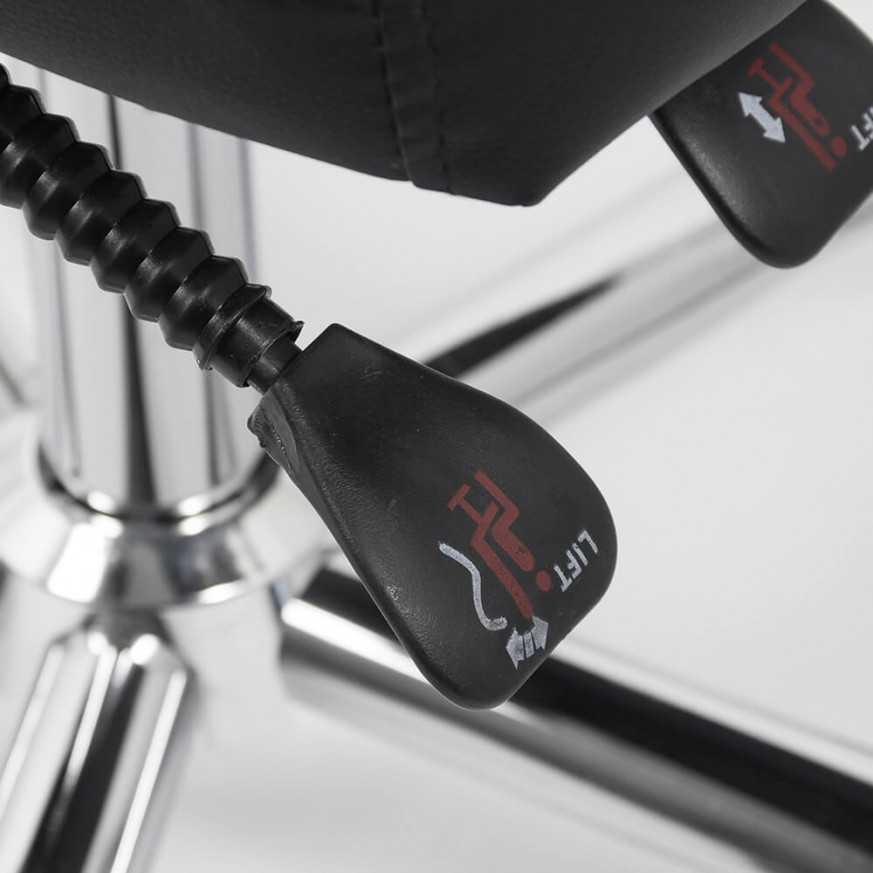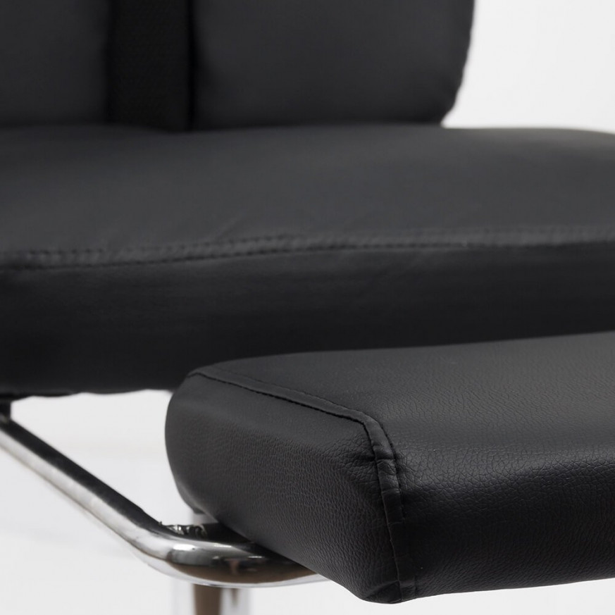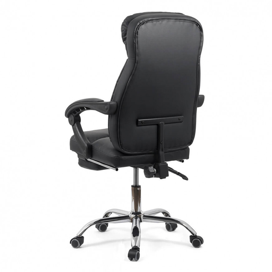 Облегалката може да се накланя до ъгъл от 135 градуса и може да се заключва във всяка позиция. Здравата основа с пет хромирани стоманени рамена издържа тежест до 110 кг.