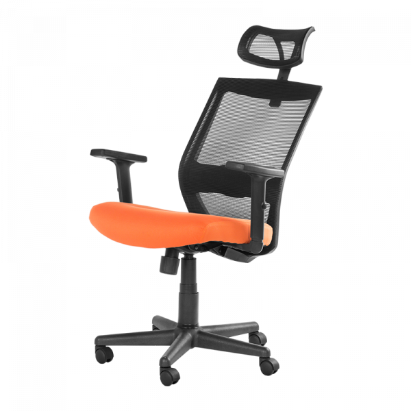 Директорски стол VERA се отличава с изчистена и модерна визия и изключително удобство, изработен с комбинация от дамаска и меш- за по-добра циркулация на въздуха. Разполага с регулируеми полипропиленови подлакътници и регулируема облегалка за глава. Столът е оборудван с заключващ механизъм, лумбална опора, газов амортисьор, люлеещ механизъм и облегалка, която се заключва в различни позиции. Материал: дамаска + мрежа Размери цяло изделие: 59*69*112-124 см. Дълбочина седалка: 50 см; Височина седалка: 39-51 см; Дължина облегалка: 73 см. База: полипропилен Подлакътници: полипропилен Газов амортисьор, коригиране на височина, люлееща функция Регулируеми на височина подлакътници Регулируем на височина подглавник Заключване на облегалка и седалка в различни позиции Лумбална опора Цвят: оранжев Максимално натоварване: 100 кг. В разглобен вид, с инструкция за монтаж Опаковка размер (см) - 68х26х59; Tегло: 14,3кг