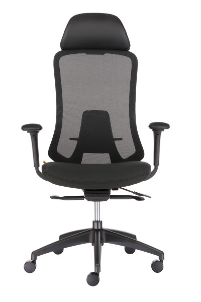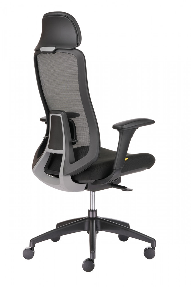 Ергономичен стол с мрежеста облегалка и полиуретанова седалка тапицирана с дамаска. Столът е с регулируема лумбална опора, както и регулируема облегалка за глава. Саморегулиращ се синхронен механизъм с възможност за заключване в четири позиции и SL механизъм за регулиране дълбочината на седалката. 4D регулируеми подлакътници с меко покритие. Стилна пластмасова кръстачка с колелца 60 мм за всички видове настилки.