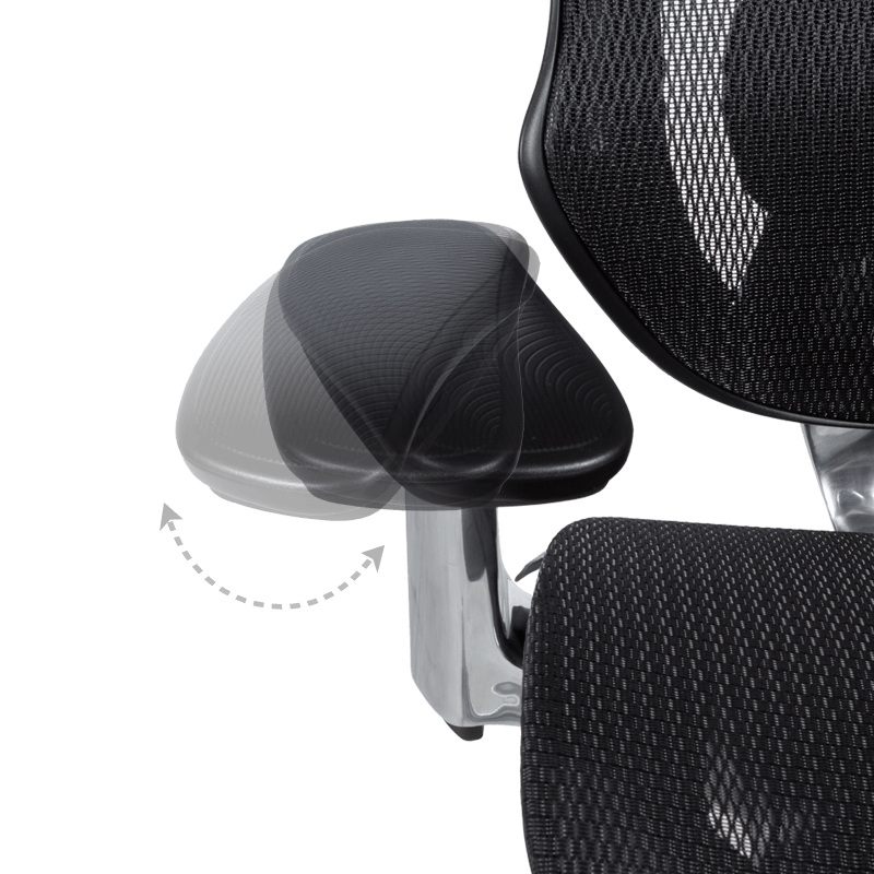 • 3D подлакътници с регулиране на височината, ъгъла и падовете напред-назад