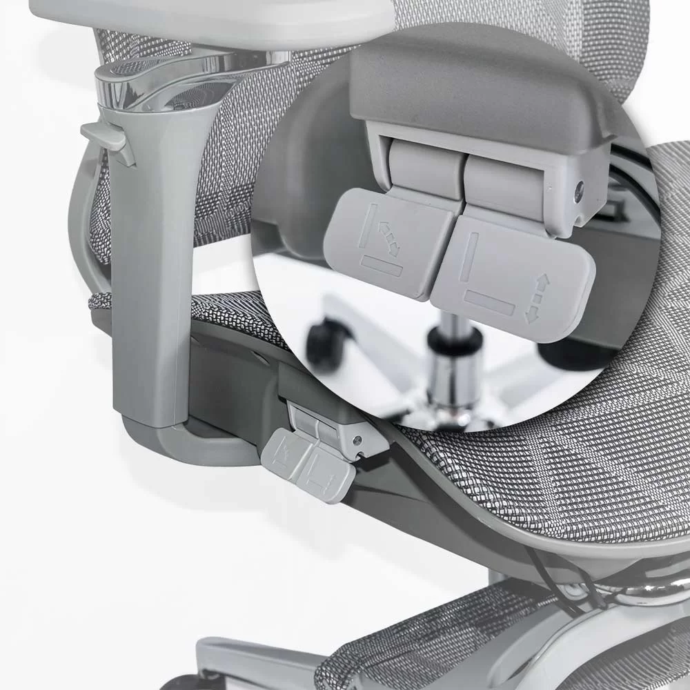 Едно от най-големите предимства на този модел са 4D регулируемите подлакътници: те се движат нагоре и надолу (6 см), наляво и надясно (7 см), завъртат се на 360° и се регулират по ширина (навътре/навън). Те позволяват перфектно регулиране на позицията на ръцете и намаляват натиска върху раменете.