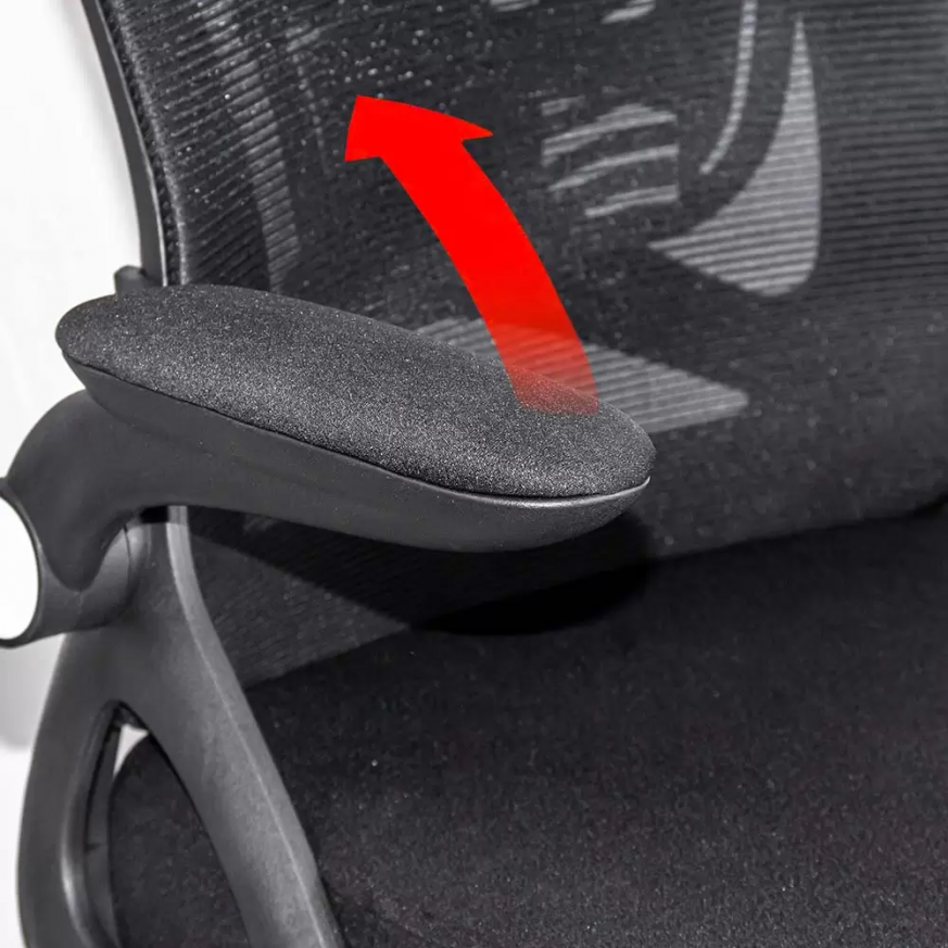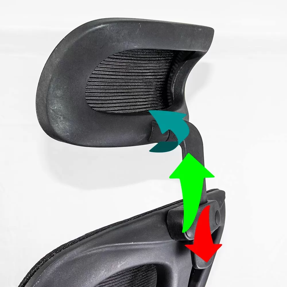 Облегалката за глава, регулируема по височина с 8 см и наклон до 35° , поддържа шийната област, предотвратявайки мускулното напрежение. Дишащата мрежеста облегалка осигурява ефективна вентилация, а регулируемата лумбална опора с 4 см помага за поддържане на правилна позиция. Подлакътниците са сгъваеми, което позволява отлична гъвкавост при употреба, особено в тесни пространства.