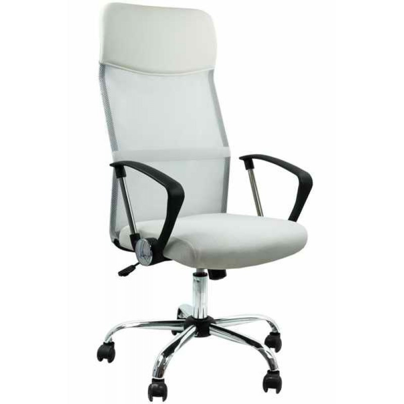 Директорски стол с изключителна комбинация от класически изчистен модел офис стол и същевременно изящно впетени модерни линии, което създава една естетически издържана визия. Изработен е от меш и еко кожа за възглавничка на главата, със стабилна хромирана база и комбинирани подлакътници от стомана и полипропилен. Функцията за коригиране на височината позволява нагласяне на стоящия в избрана от него позиция. Столът е оборудван с газов амортисьор и лумбална опора. Този офис стол допринася за модерния дизайн на Вашето офис обзавеждане.