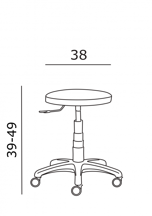 1. СЕДАЛКА Седалка от формована полиуретанова пяна. Тапицирана с дамаска, меш или кожа във цвят по избор. SEAT Seat in polyurethane moulded foam. Upholstered with fabric, mesh or leather in color of your choice. 2. МЕХАНИЗЪМ Up-down Механизъм. Регулиране височината на седалката. MECHANISM Up-down Мechanism. Height adjustment of the seat. 3. ГАЗОВ АМОРТИСьОР Газов амортисьор, чрез който се регулира височината на седалката с 10см. GAS LIFT Gas lift that adjusts the seat height by 10 centimeters. 4. ОСНОВА Пластмасова основа Ø 60. BASE Plastic base Ø 60. 5. КОЛЕЛЦА Подходящи за мек под. ‘CASTORS Castors for soft floor.