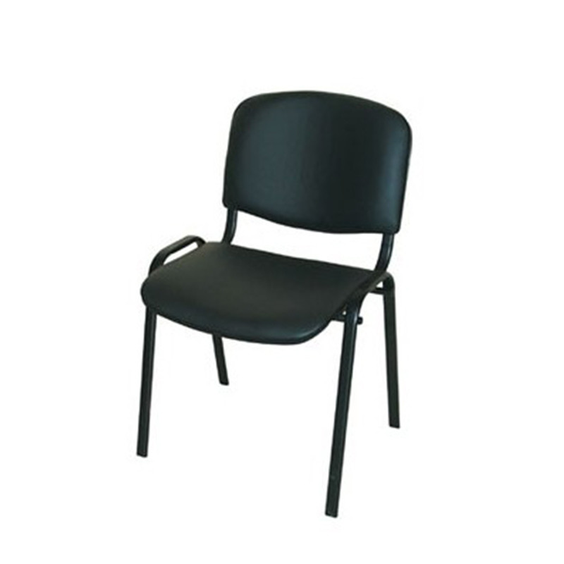 Посетителски стол със седалка и облегалка от многослойна дървесина, тапицирана с еко кожа V. Столът е оборудван със здрава метална рамка, прахово боядисана в черен цвят, пластмасови декоративни капаци на седалката и облегалката, възможност за монтиране на подлакътници, възможност за монтиране на конферентна масичка, стифиране до 15 броя.