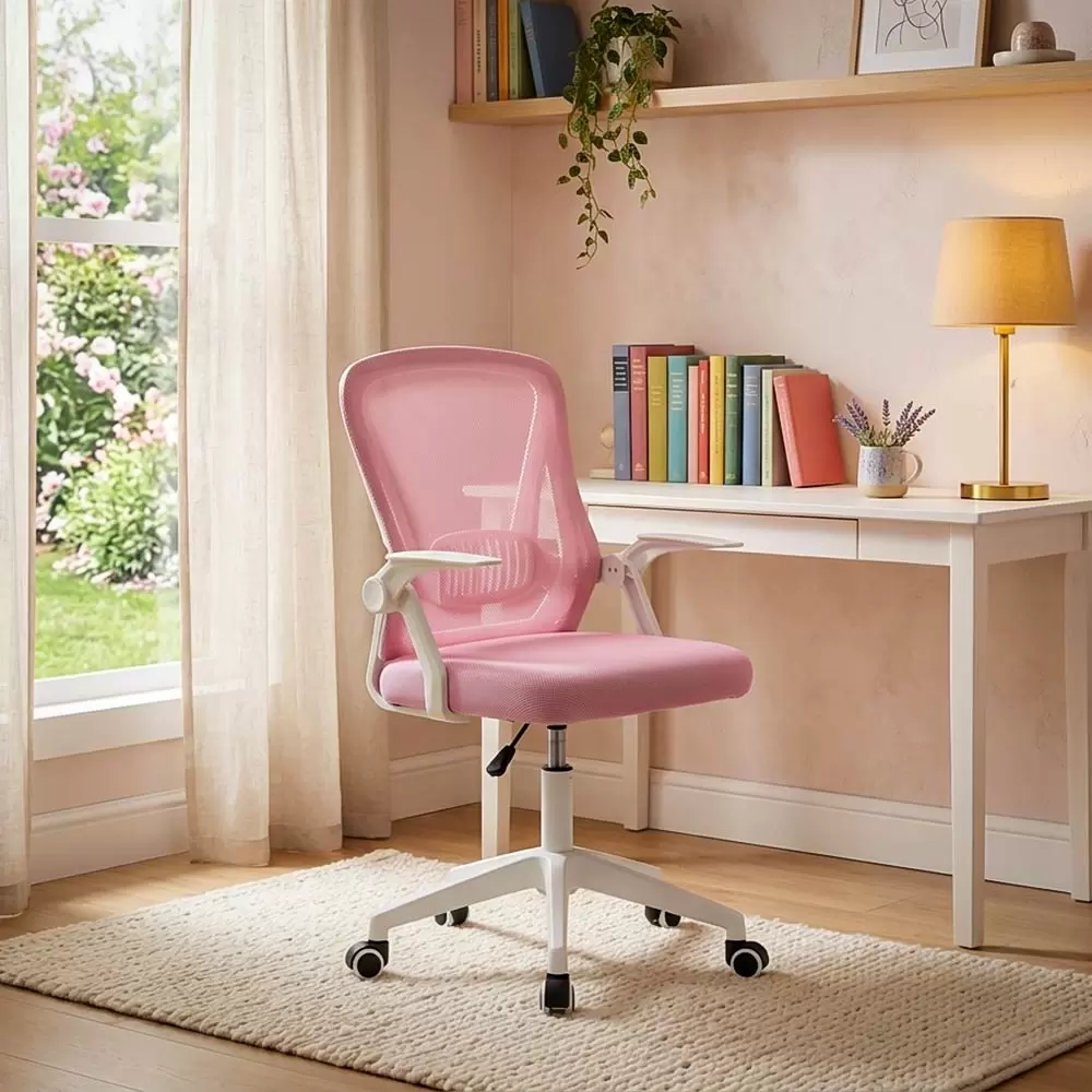 Накланящата се на 120° облегалка осигурява ефективна опора за намаляване на натиска върху гърба, а сгъваемите на 90° подлакътници спестяват място, като съхраняват стола под бюрото, като по този начин увеличават максимално наличното пространство в стаята.