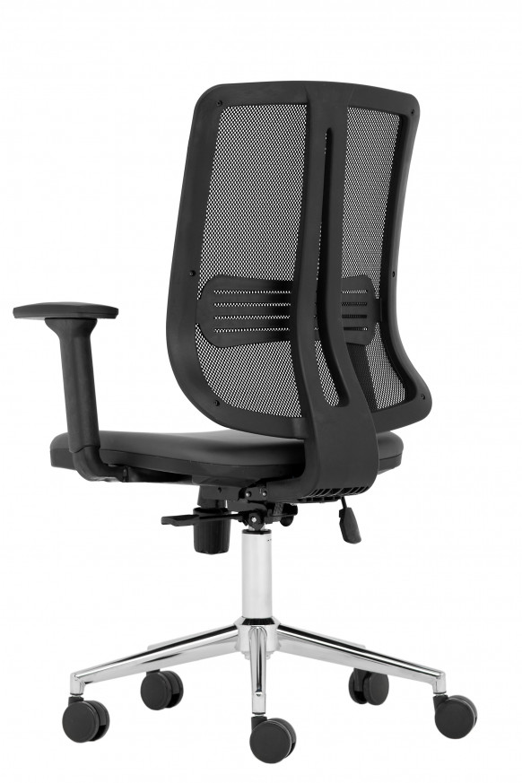 Дишаща облегалка. Тапицирана с мрежа в черен цвят. Ергономична форма.