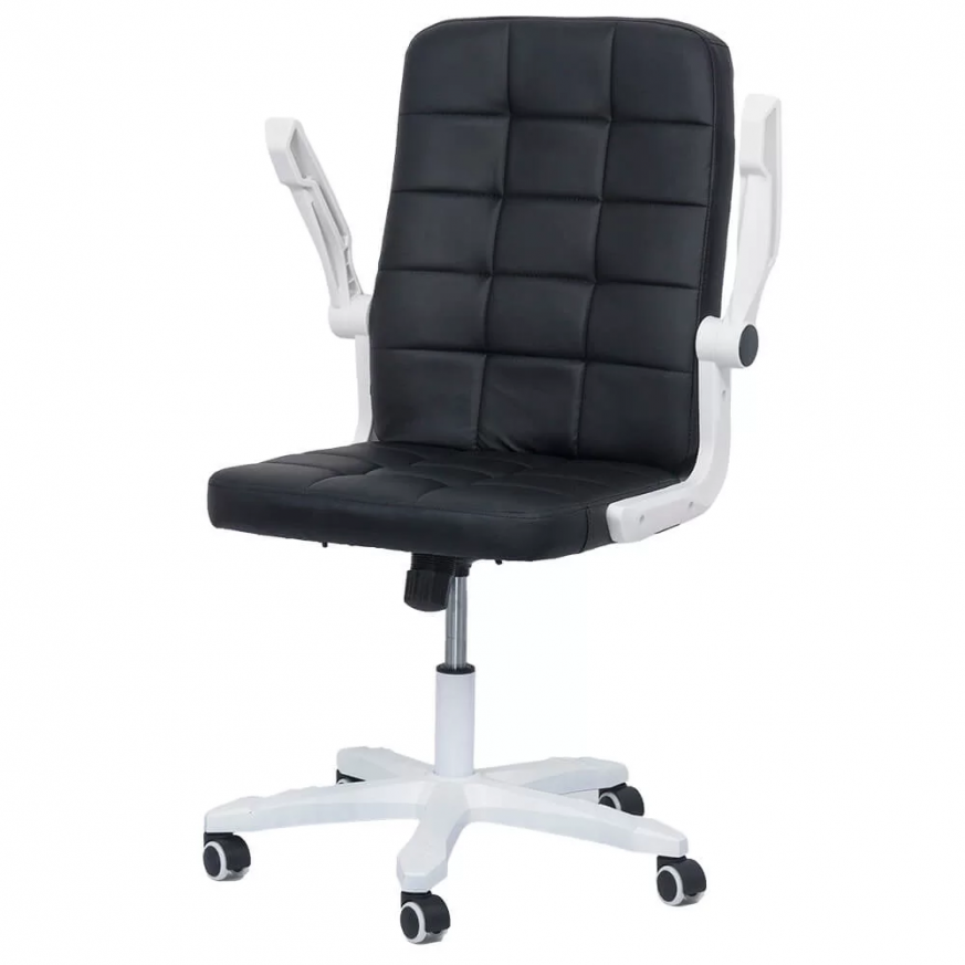 Работен стол TACITO е тапициран с еко кожа, а колелцата му имат слой гума, който им позволява да не надраскват пода.