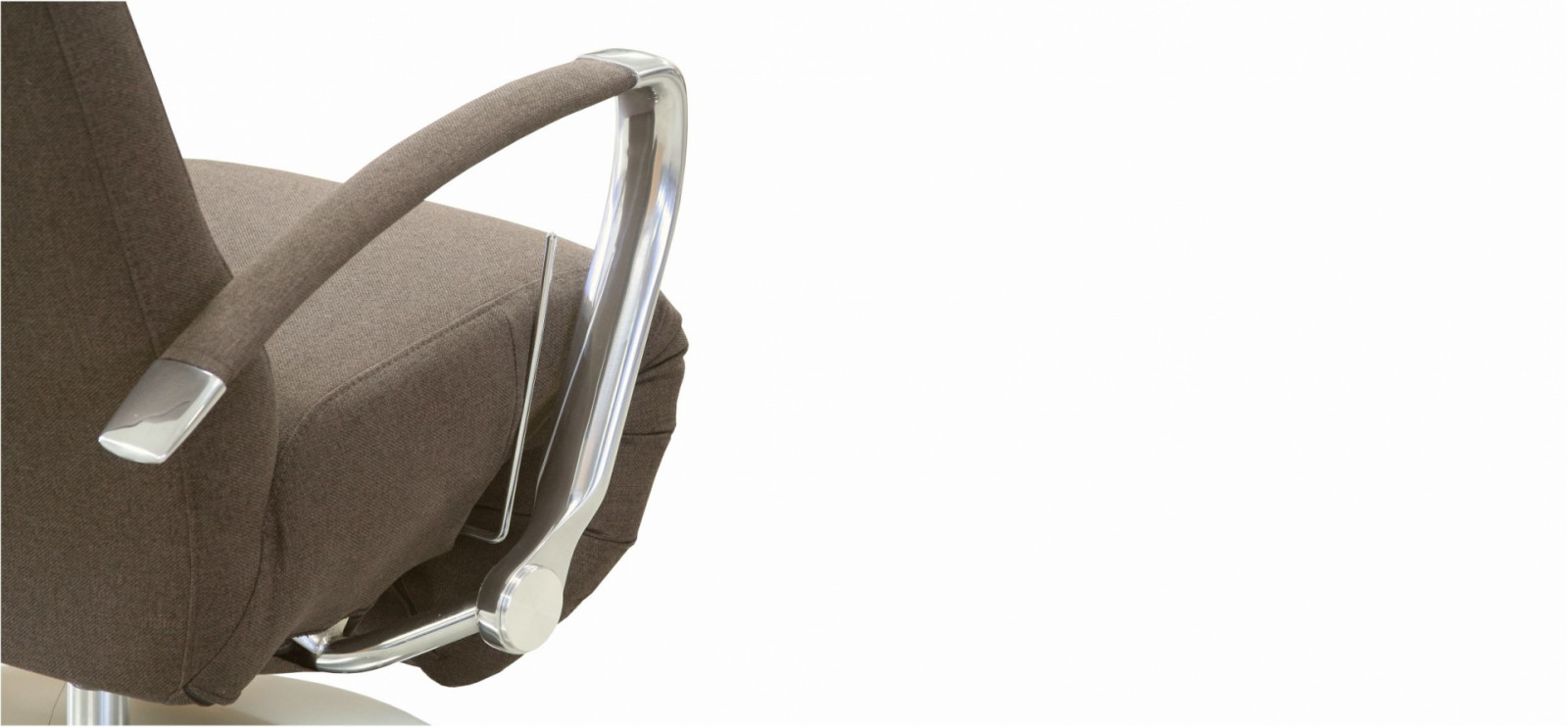 Алуминиеви подлакътници и звездовидна въртяща се основа от полиран алуминий или чиниевидна от шлифован инокс - по избор. Регулируемата подпора за глава е стандарна опция за този модел.